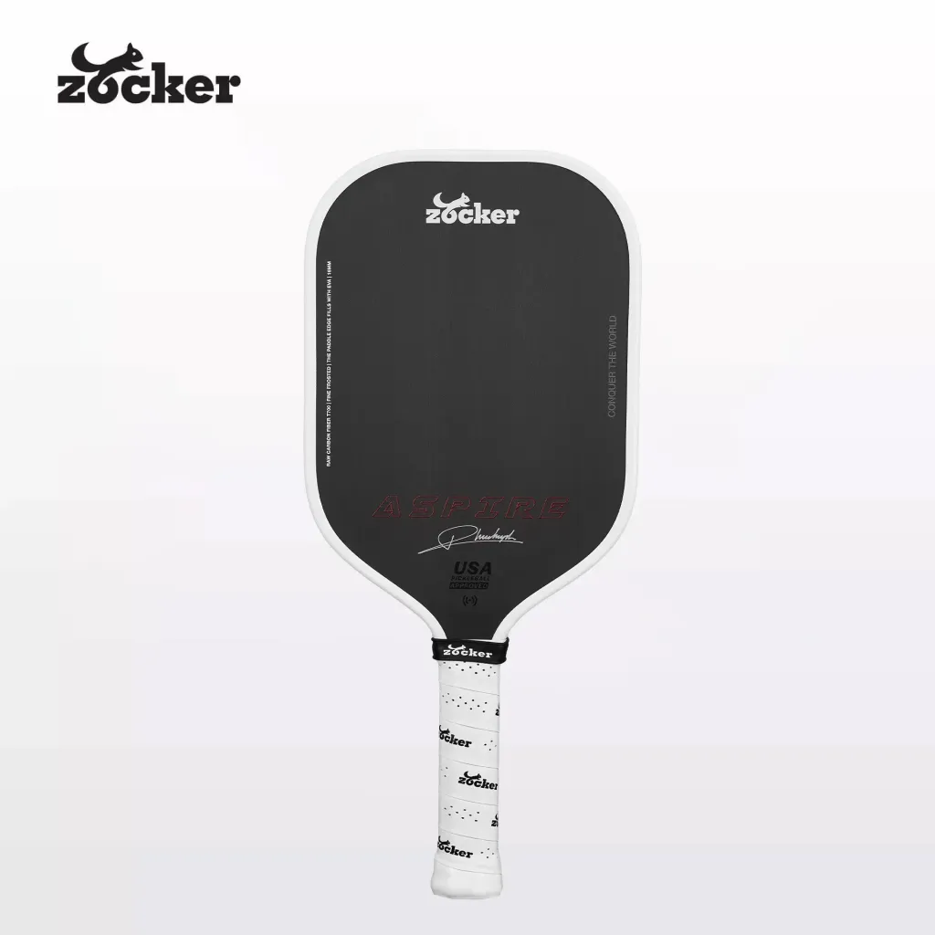 With a simple yet sophisticated design, the Zocker Aspire white edge pickleball racket brings elegance and modernity, suitable for those who love minimalist style with outstanding performance; An ideal choice to enhance the Pickleball playing experience. The core uses a high-densityhot-pressed honeycomb structure to optimize ball control, making it easy to make strong shots while maintaining high accuracy. The surface of the T700 carbon-coated racket is imported from Japan – this is a high-quality material used on advanced racquet models of major sports companies in the world. This gives the Aspire racket high durability, good load resistance, and minimizes vibration when in contact with the ball. As a result, it gives a feeling of compacting your hands, reducing the risk of hand pain even when playing for a long time. The core structure and surface are optimized to reduce vibration when in contact with the ball to almost zero. Specifications and Warrantly Technology: heat pressing + NFC chip Weight: 230+-5gram Racket Parameters: Length: 41.8 cm Width: 18.7 cm Handle length: 14 cm Handle length: 13.6 cm Racquet face length: 27.8 cm Thickness: 16mm - 13.3mm Color: White Warranty: 3 months Pickleball Zocker Racket Warranty Process: Step 1: Scan the NFC chip at the racket handle Step 2: Enter information including: name, serial code, phone number, date of purchase Step 3: Click finish, the information is successfully saved on the system, can be conveniently looked up Warranty Conditions: Warranty for defects such as frame breakage, rolling failure due to manufacturing defects. No warranty for breakage due to collision, misuse, damage caused by natural wear and tear, or abrasion at the rim due to collision with the pitch.