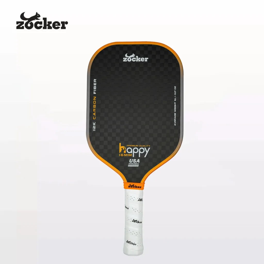 Zocker Happy HP3 Premium Quality Orange is the most powerful 12K carbon racket on the market today, for players from newbies to professionals. With its sophisticated design and cutting-edge technology, this racket is not only an effective competition tool but also a symbol of class and style. Outstanding features of the Zocker Happy HP3 Premium Quality Orange Pickleball Racket - The harmonious combination of orange and black, along with the delicate checkered pattern on the racket face creates an extremely impressive appearance. The handle is covered with high-quality rubber, providing a comfortable and secure feeling when holding. - The racket core is made from composite honeycomb synthetic fibers, helping to reduce weight and increase durability. Advanced heat pressing technology helps to increase the stiffness of the racket frame, ensuring stability during competition. - Zocker Happy HP3 Premium Quality has been certified to meet USAPA competition standards, affirming the quality and reliability of the product. 12K Carbon Fiber racket face (meets USAPA standards) Technology: heat press + NFC chip Weight: 230+-5gram Racket specifications: Width: 19cm Length: 42cm Handle length: 13.6 cm Racket face length: 28 cm Color: Orange Warranty: 3 months Zocker Happy Pickleball warranty process: Step 1: Scan the NFC chip on the racket handle Step 2: Enter information including: name, serial code, phone number, date of purchase Step 3: Click Finish, information is successfully saved on the system, can be conveniently looked up Warranty conditions: Warranty covers defects such as broken frames and broken shafts due to manufacturing defects. Warranty does not cover breakage due to impact, misuse, damage due to natural wear and tear or edge wear due to impact with the court surface.